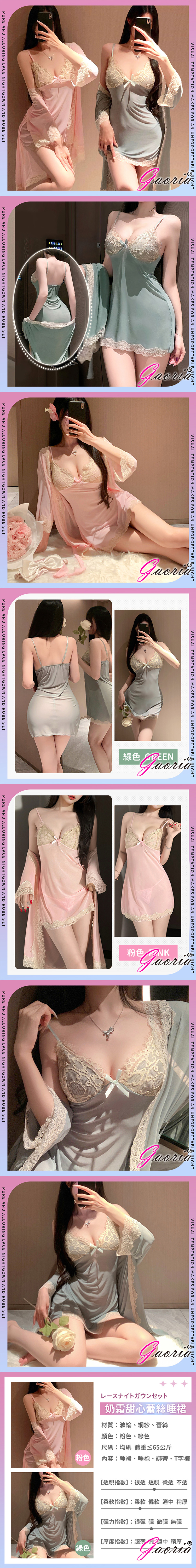商品名稱:Gaoria|奶霜甜心 純欲蕾絲睡裙外袍套裝